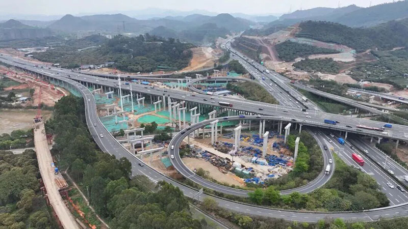 莞深高速、?;⒏咚俑臄U(kuò)建工程交匯處——大有園互通樞紐施工現(xiàn)場(chǎng)